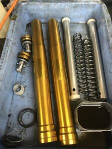 ガスが入っていたりと他の倒立フロントフォークとは構造が違ったりするので複雑ですがOH可能です。
