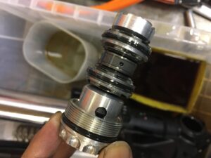オイルシール、フォークオイルはもちろん、カートリッジ側のバルブ、シムを洗浄してガスを入れ替えて、はじめて「オーバーホール」といえる作業になります。